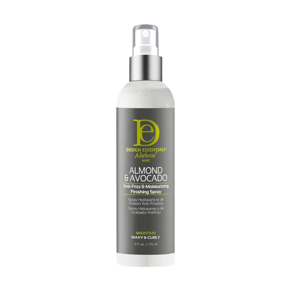 De Design Essentials Almond & Avocado Anti Frizz Moisturizing Finishing Spray is een lichte, fijne spray die is ontworpen als de ultieme laatste stap in de stylingroutine. Het product richt zich op het afwerken, hydrateren en beschermen van het kapsel tegen pluis.