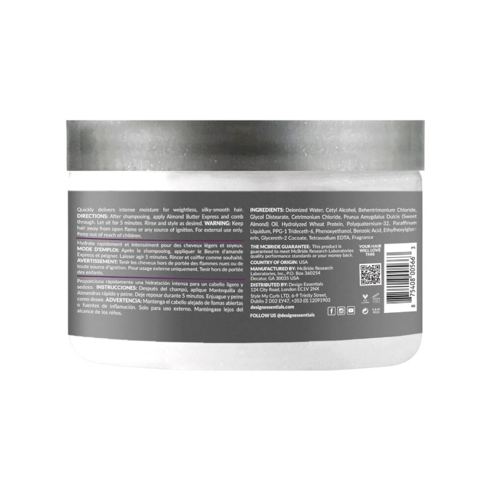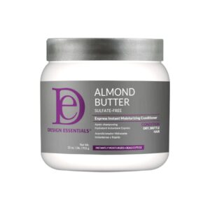 De Design Essentials Almond Butter Express Instant Moisturizing Conditioner is een snelle, rijke en hydraterende conditioner die is ontworpen om het haar direct te conditioneren, te verzachten en te ontwarren, met de voedende kracht van Amandelboter.