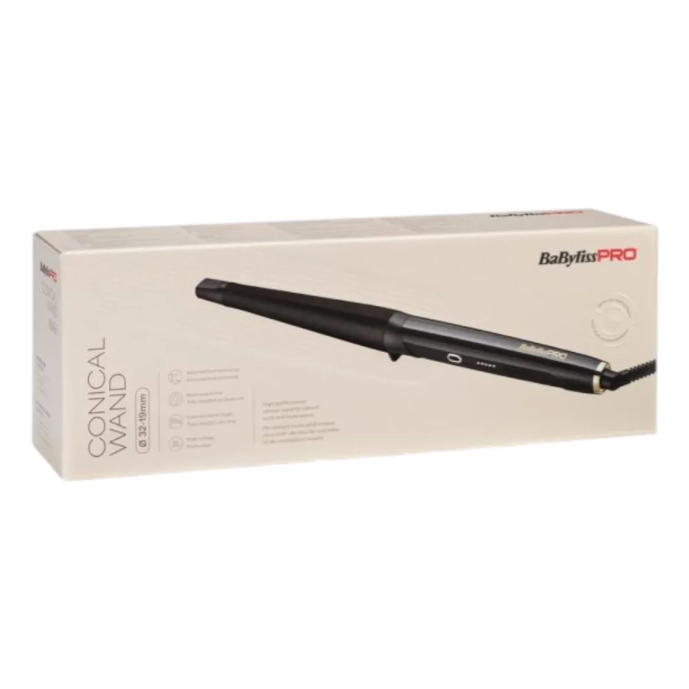 De Babyliss PRO High Performance Conical Wand 32-19mm is een professionele conische krultang waarmee je moeiteloos natuurlijke, volumineuze krullen en zachte waves creëert. Dankzij de taps toelopende vorm van 32 mm naar 19 mm kun je verschillende krulstijlen maken, van losse golven tot meer gedefinieerde krullen.